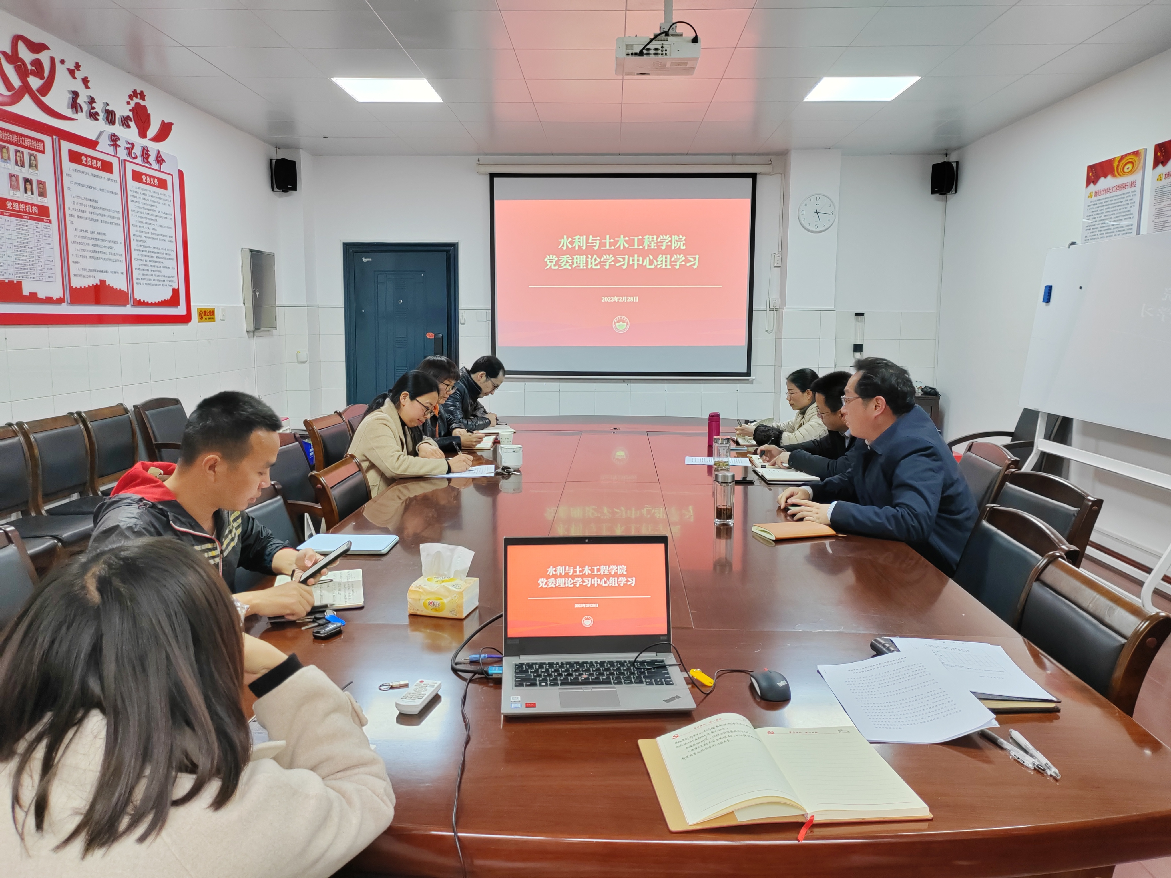 本网讯(通讯员 喻璐颖)2月28日下午,为持续深入贯彻落实党的二十大精神,共创学院改革发展新局面,学院在8教南212会议室召开党委理论学习中心组学习会议。会议由党委书记丁凯主持,学院领导班子成员、党委委员、党支部书记参加。