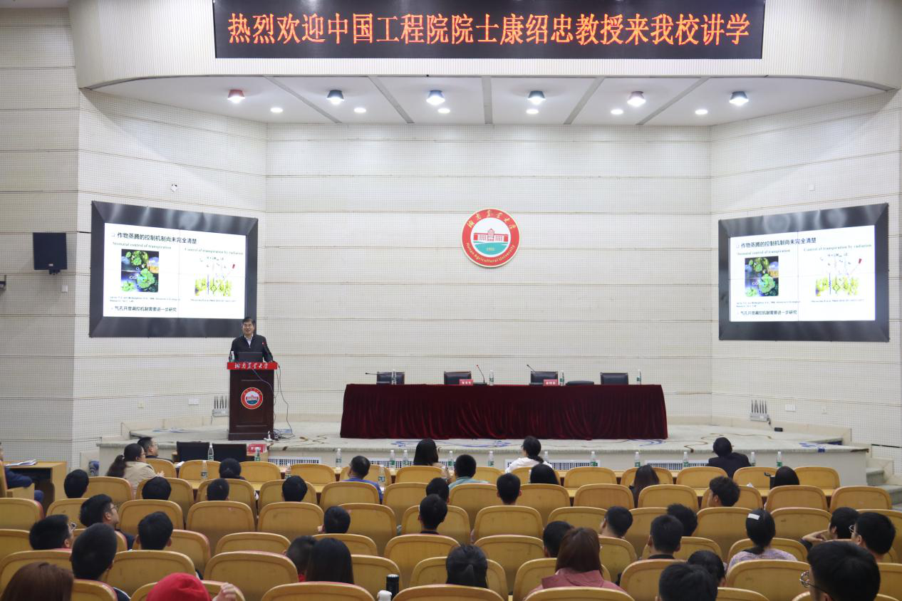 本网讯(黑料每日大赛 翟光辉 刘拥斌)10月14日下午,中国工程院院士、中国农业大学康绍忠教授应邀做客我校研究生学术活动节,在学校图书馆大成厅作题为《多尺度水热碳通量检测模拟及对变化环境的响应与调控》的学术报告。会议由湖南农业大学党委委员、副校长邹冬生主持。黑料每日大赛全体领导班子及学院教师、研究生以及本科生代表共200余人参加报告会。