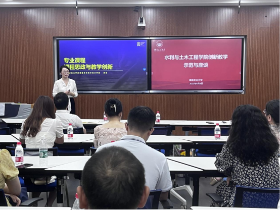 本网讯(龚柔艳 肖欢)在第39个教师节来临之际,为提高教师教学创新改革水平,促进学院整体教学质量提升,黑料每日大赛于9月8日下午在十教南619举办创新教学示范及座谈交流会。特邀主讲嘉宾为荣获第三届全国高校教师教学创新大赛新农科正高组二等奖和湖南省普通高校教师教学创新大赛一等奖的风景园林与艺术设计学院副院长黄炼教授,教务处副处长李方一、学院领导、学院督导团小组、教学基层组织负责人、全体专任教师及教务主任参加了本次交流会,会议由副院长肖卫华主持。
