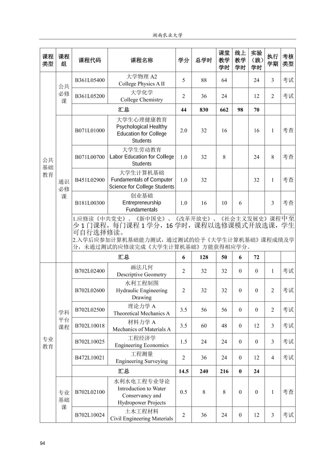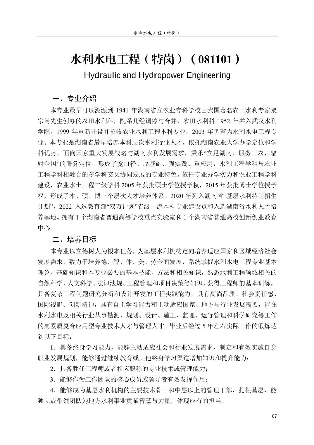 【培养方案】水利水电工程(特岗)专业人才培养方案