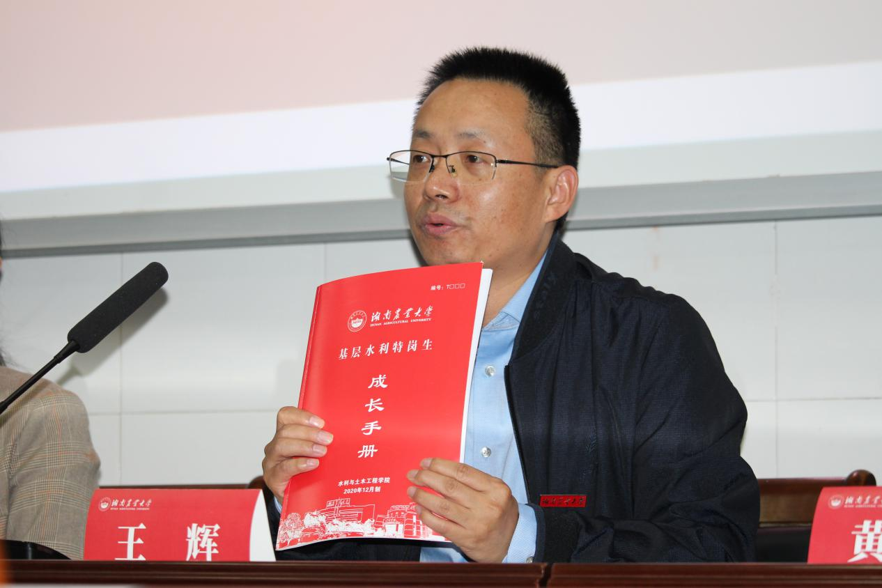 王辉院长在讲话中指出,“一代人有一代人的使命,一代人有一代人的担当”,不仅要强化历史使命感,也要勇于责任担当。他借以习近平总书记“七年知青岁月”的典型事例,勉励在座全体水利特岗生要珍惜学校提供的良好学习条件,努力学习过硬本领,提升自身综合素质,不辜负国家和学校的期望,早日回到基层磨砺自己,为社会发展奉献力量。
