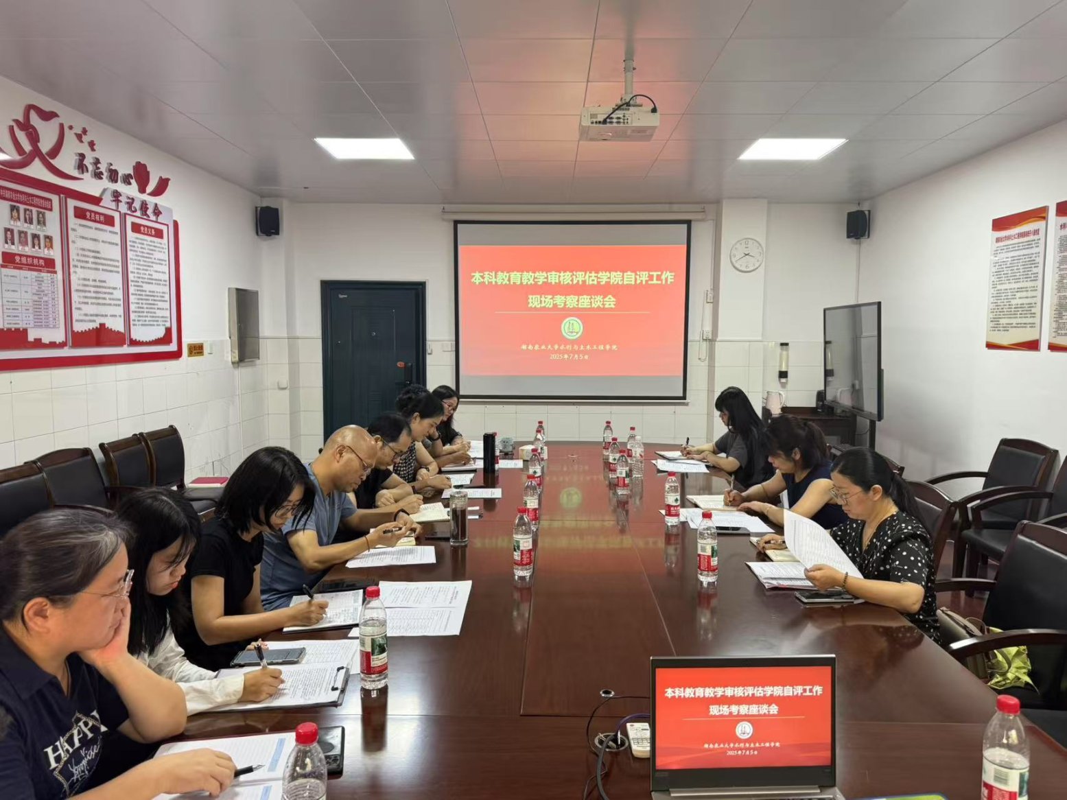 本网讯(黑料每日大赛 阳华)为全面提升本科教育教学质量,扎实推进新一轮本科教育教学审核评估自评工作,7月5日下午,学工部部长李姣、长沙理工大学盛丰教授、中南林业科技大学孙广臣教授、湖南农业大学蒋红梅教授、全腊珍教授、教务处副处长张芬等一行莅临黑料每日大赛,开展本科教育教学审核评估自评工作现场考察。专家组通过集中汇报、材料审阅、实地考察、师生座谈会及教师磨课抽检等环节,对学院本科教育教学工作进行了全面深入的现场考察与指导。学院班子成员、各专业负责人、基层教学组织负责人、专业核心课程负责人代表、教学秘书、辅导员代表、实验员代表全程参与。
