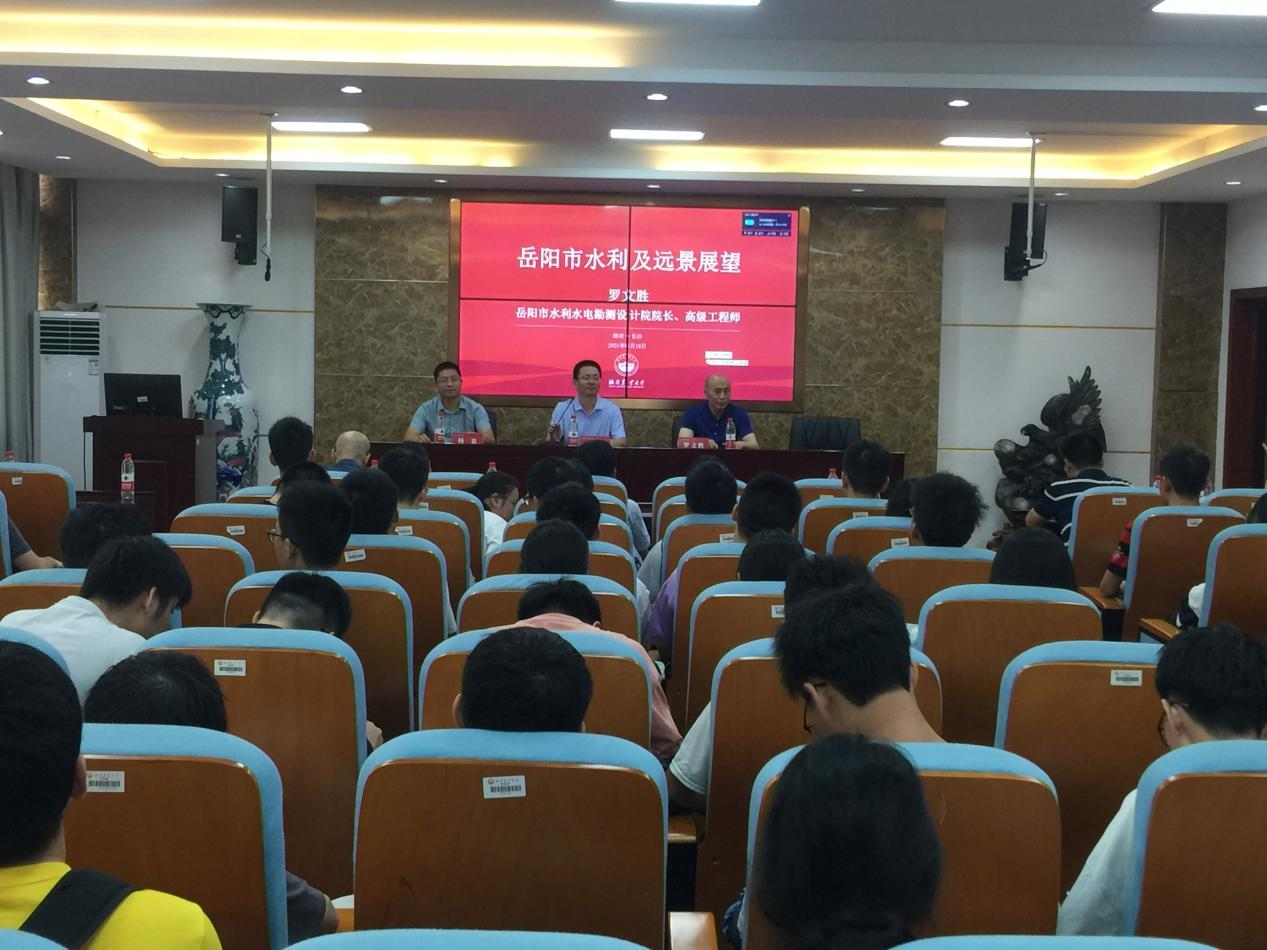 本网讯(通讯员 翟光辉)6月18日上午,岳阳市水利水电勘测设计院院长罗文胜、娄底市水利水电勘测设计院党委书记杨泉应邀来校作学术报告。报告由学院院长王辉主持,学院部分教师、2018级-2020级水利专业学生参加。