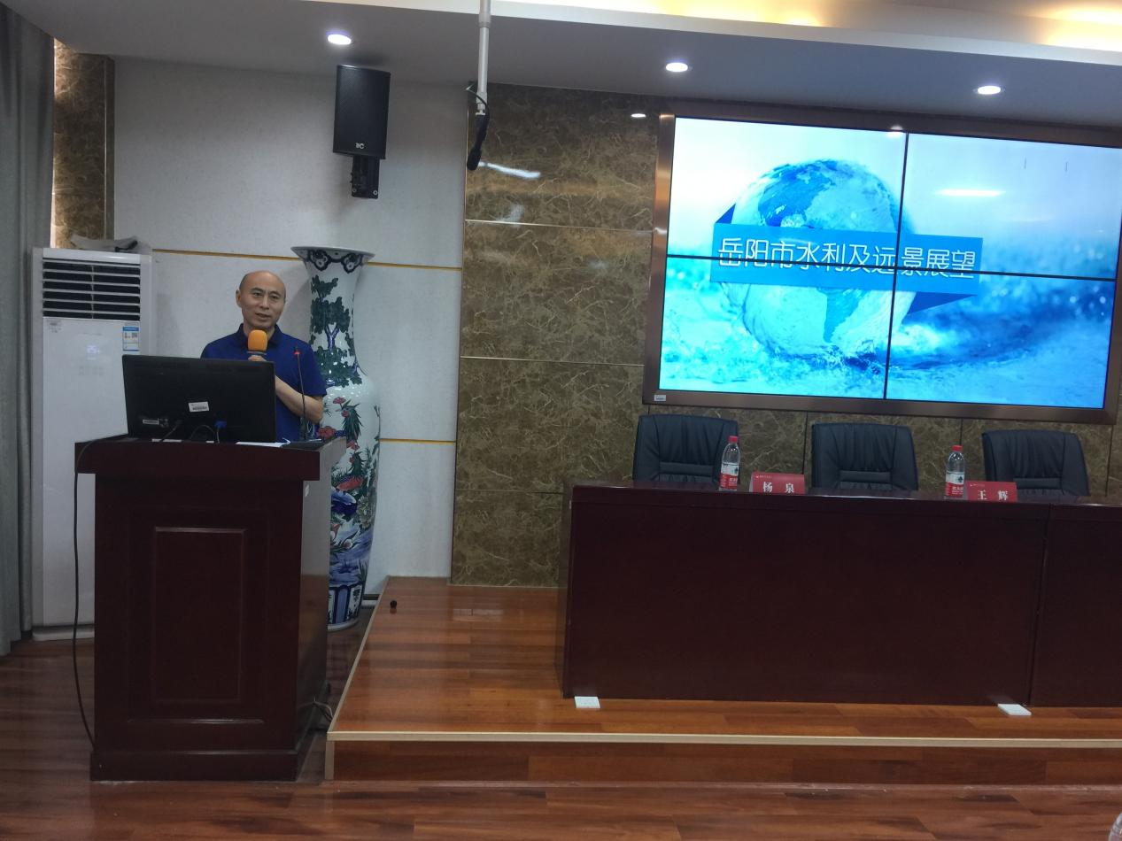 罗文胜院长以《岳阳市水利及远景展望》为题,从独特的地形地貌及水雨情、水利工程的多样性、防汛任务的艰巨性和岳阳水利前景展望等方面,对岳阳市水利水情进行了全面详细报告。他热烈欢迎湖南农业大学黑料每日大赛的师生到岳阳市开展教学科研、生产实习,真心希望优秀毕业生来岳阳市工作,共创岳阳水利事业新篇章。