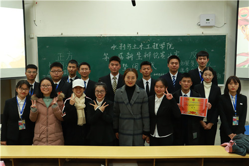 颁奖典礼环节,学工组邹亚老师与辩论队队长王安琪对本次比赛进行总结点评。她们对辩手们的优秀表现予以肯定,同时,指出了比赛中各辩手存在的问题,并提出了建议。最后,主持人宣布比赛结果,土木一班赢得冠军,工管一班获得亚军,工管一班许佳妮同学获得“最佳辩手”称号。邹亚老师为参赛选手颁奖并合影留念。