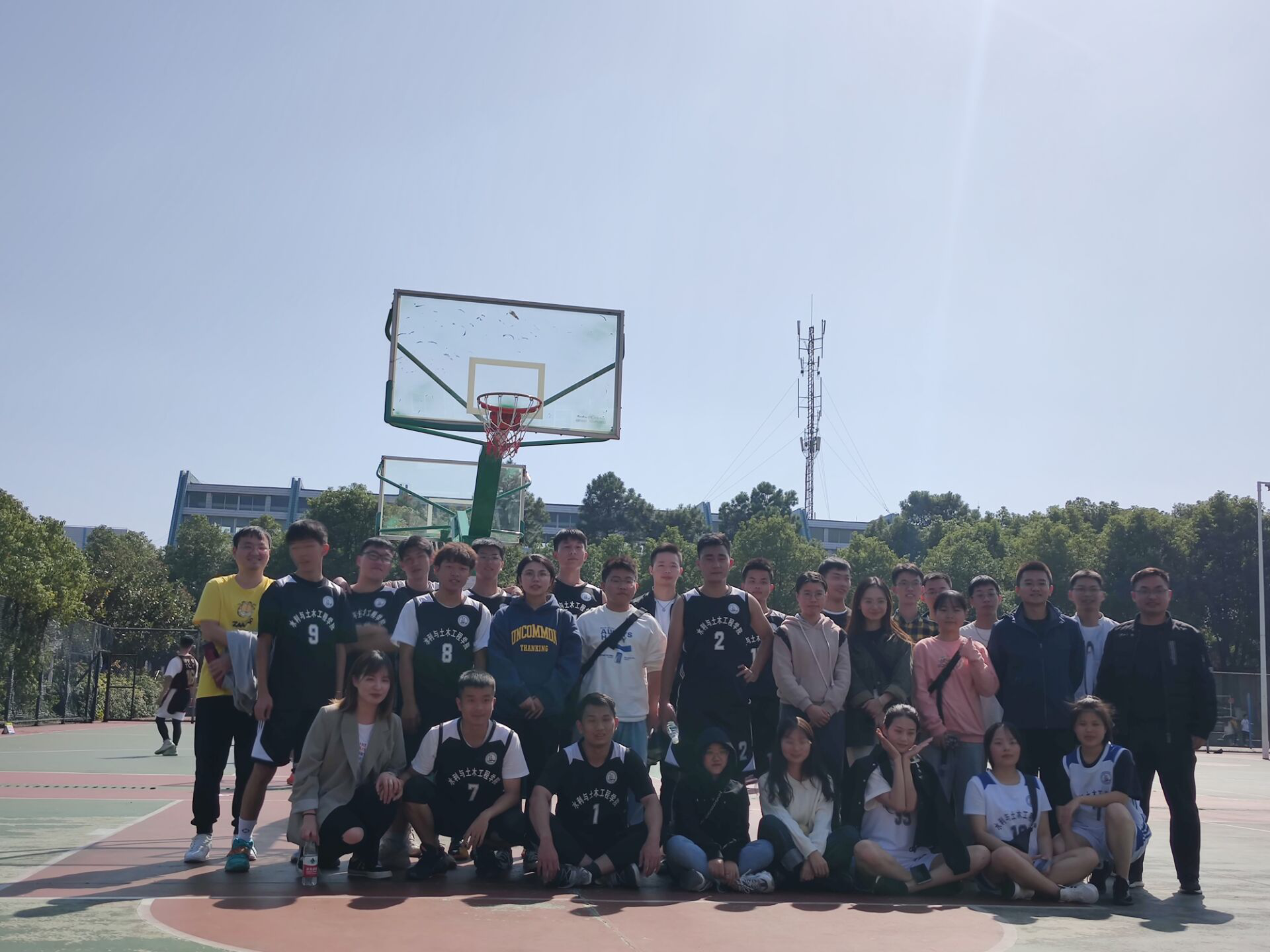 我院男队对战商学院。比赛开始,身着黑色球衣的水利土木学院队员表现出强烈的取胜欲望。上半场,他们通过远距传球,精准投篮,赢得现场观众的阵阵欢呼。下半场,学院球队及时总结经验,调整战术,全力追赶,最终将比分定格在17:45。
