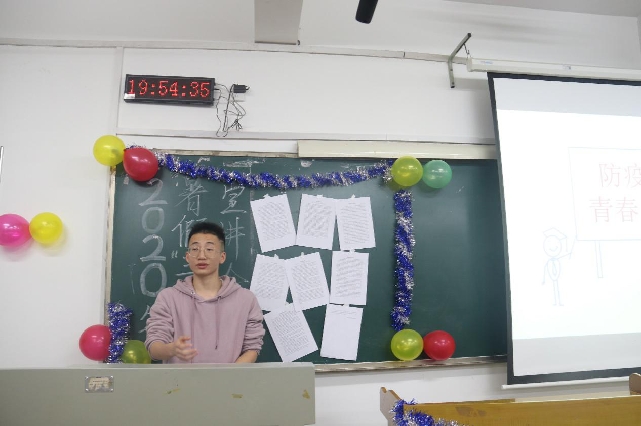 朱佳晨分享了“防疫青春”的故事。他回忆,疫情肆虐下的农村,老人居多且属易感人群,但老人大多防护意识不强。为了做好全面防疫工作,他多次深入老人家中普及防疫知识,分发防疫物资。他还多次参与街道消毒工作,为乡村防疫工作贡献自己的力量。