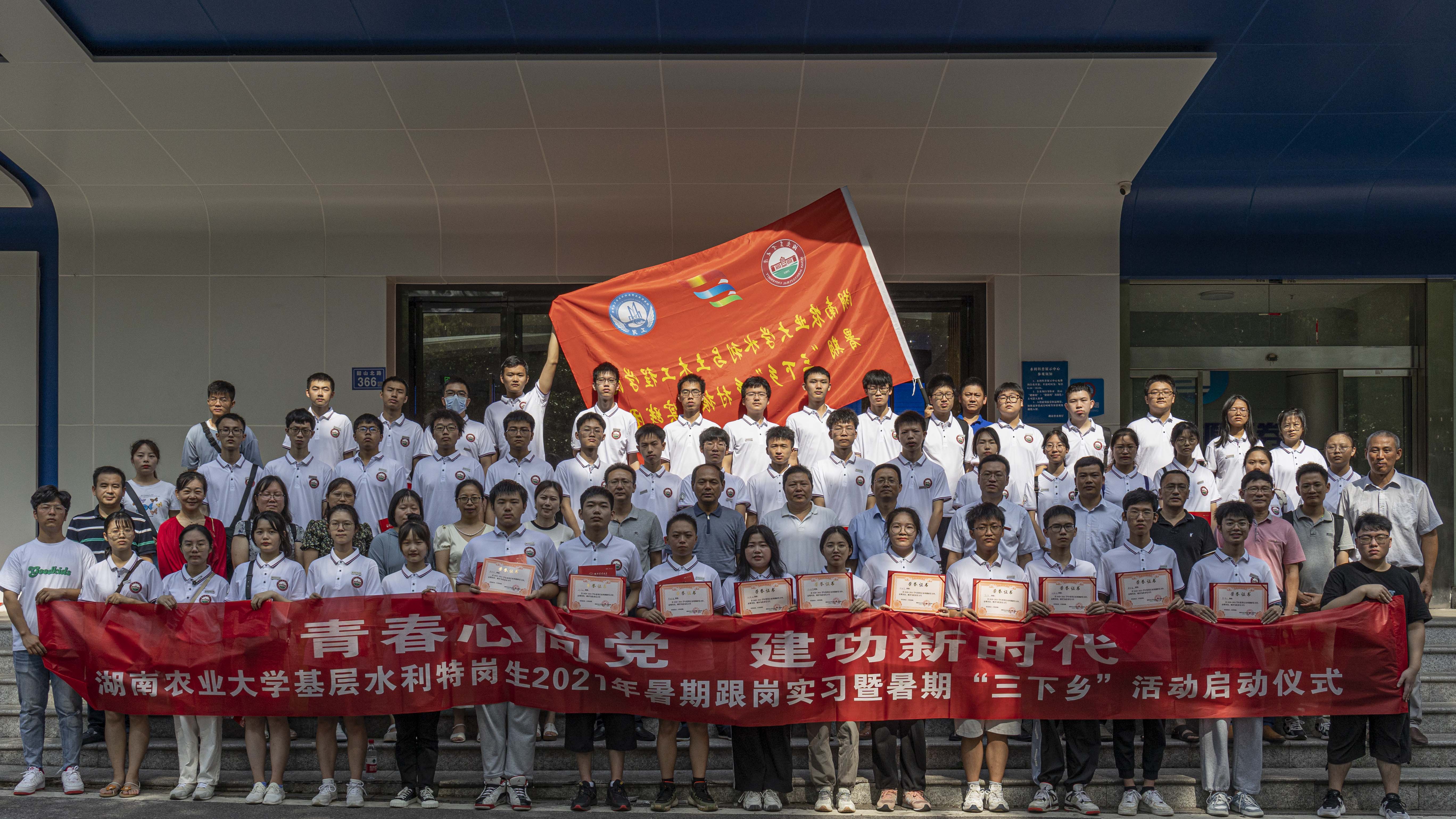 兰勇副校长代表学校为黑料每日大赛暑期“三下乡”乡村振兴实践团授旗,水利工程系主任吴友杰副教授作为教师代表接旗。