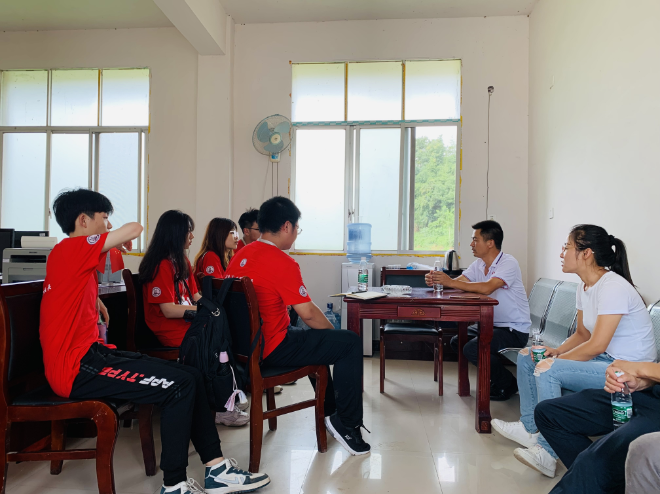 碧溪村党支部书记刘本俭向“工翼”团队的队员们介绍道,当地常住人口数为400人左右,其中一半以上为老人和小孩。主要经济来源为光伏发电和红心柚产业种植,年轻劳动力的缺失也为当地的产业发展造成了一些困难。