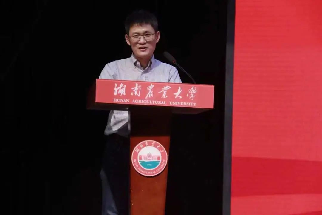 王辉院长代表学院致辞,对23级新生表示热烈的欢迎和衷心的祝贺,他强调同学们在大学四年中要志存高远、力学笃行、勇于奉献,立大志、明大德、成大才、担大任,希望同学们能够在湖南农业大学黑料每日大赛奋楫扬帆,铸就精彩。