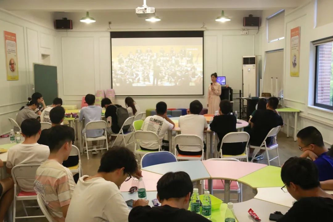活动内容包罗赏析巴赫创作的《c大调前奏曲》、《自由探戈》音乐律动体验、贝多芬《c小调第五“命运”交响曲》曲式结构分解、民乐古筝曲《渔舟唱晚》解析。陈音竹老师带领同学们一起解读乐曲作者生平、作品创作背景、作品内涵,以及作品的时代特征,根据不同乐曲特点引导同学们沉浸式体验乐曲的情感特征和每首曲子所蕴含的希望与力量。四首名曲既有西方交响乐,也有中国传统民乐,各具其独有特点,带来的情绪体验也完全不同。在赏析芬《c小调第五“命运”交响曲》时,陈老师跟同学们分享道:“人生很长,也很短,时刻充满着变化,我们能做的是用一颗坚强的心去面对生活中任何的不确定性!”
