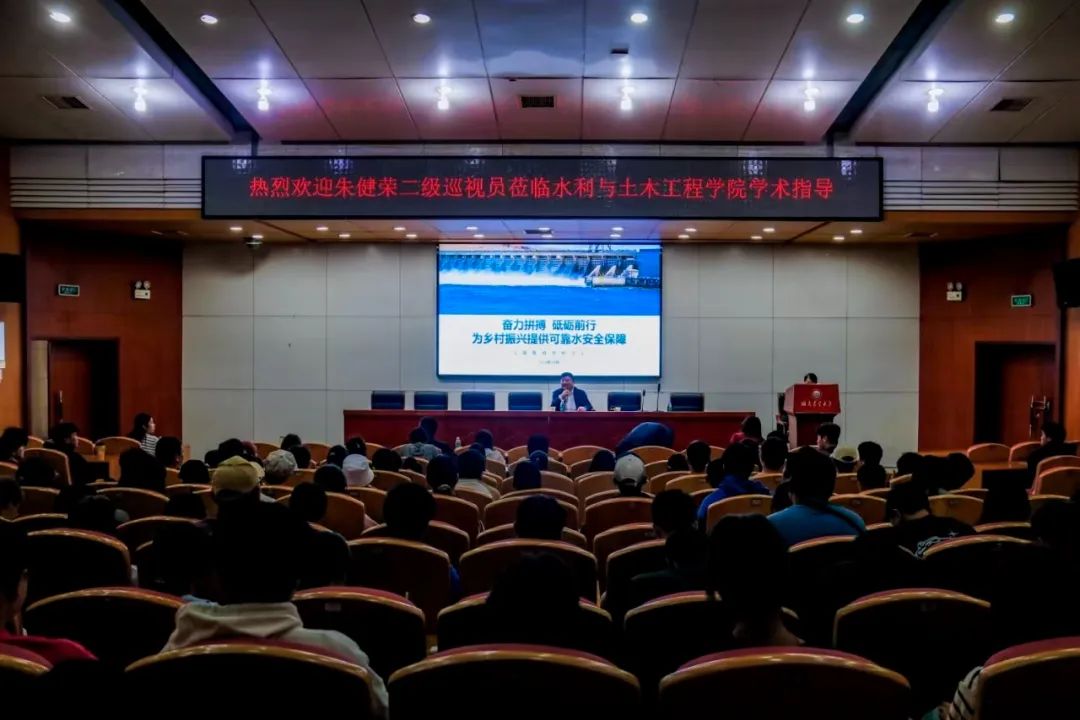 朱健荣以“奋力拼搏 砥砺前行——为乡村振兴提供可靠水安全保障”为题,结合个人科研工作经历,分享了在科研探索道路上的心得感悟。他指出“科学成就离不开精神支撑”,从致力于科学救国的艰辛历程,到迈向科技强国的辉煌征程,科学家精神始终是不可或缺的核心力量,爱国是科学家精神的底色,要面向国家重大需求做纯粹科研人。