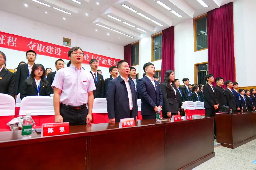 誓言铿锵,责任在肩。会上,本届团委学生会主席团代表张秋博带领全体团学干部庄严宣誓。