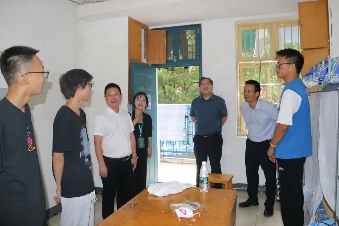 晚上6时,我院领导班子成员、全体辅导员深入学生宿舍走访,关怀慰问学院新生。院长王辉亲切地和来自五湖四海的同学们交谈,细心地询问了同学们来学校后的生活以及宿舍入住情况,提醒同学们要提高安全意识,谨防诈骗。院党委书记丁凯引导同学们不仅要做好学习规划,树立学习目标,还要加强体育锻炼,保证身体健康。寝室里洋溢着师生浓浓的情谊,让同学们深深感受到了学院的关怀与温暖。