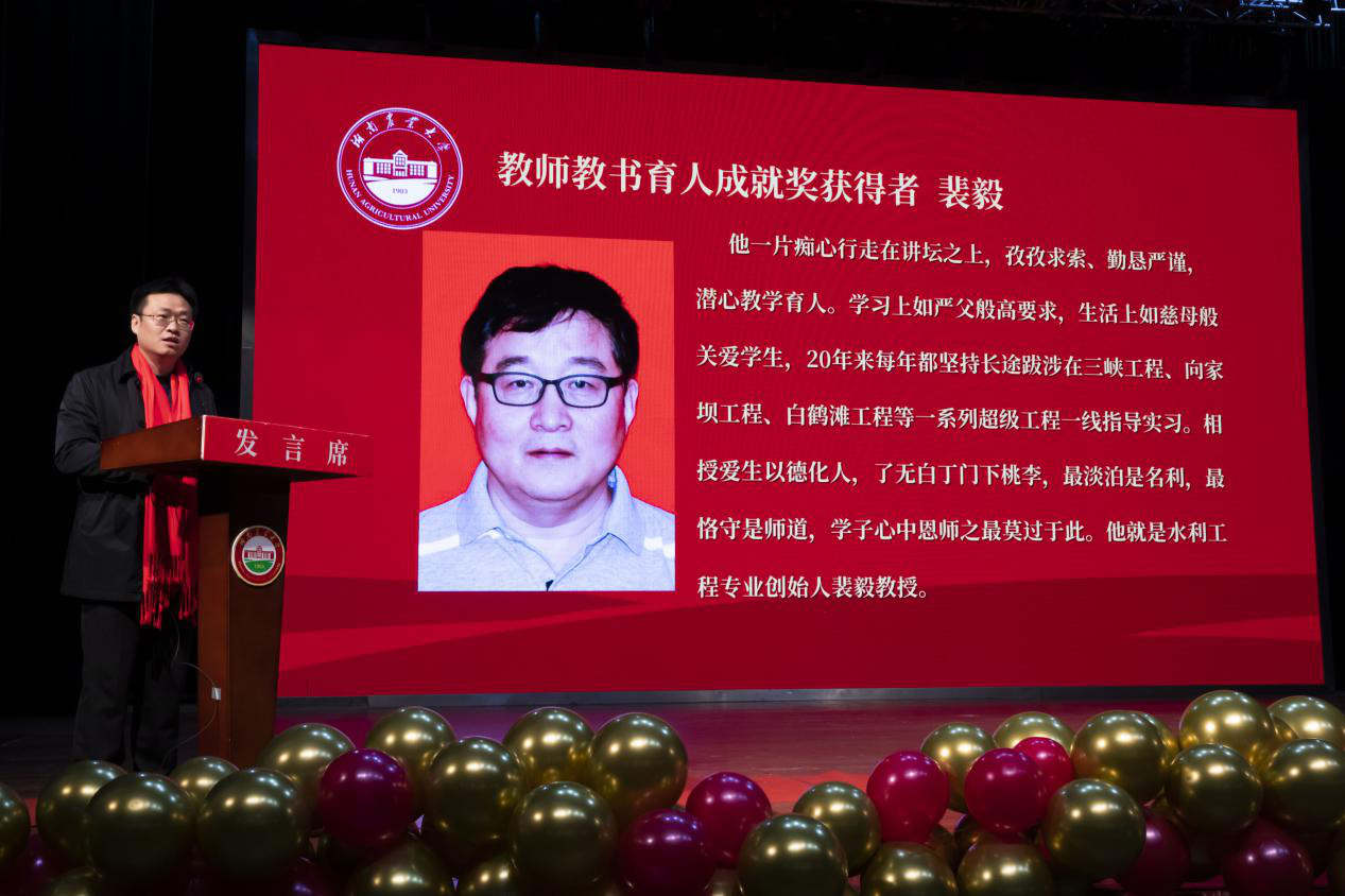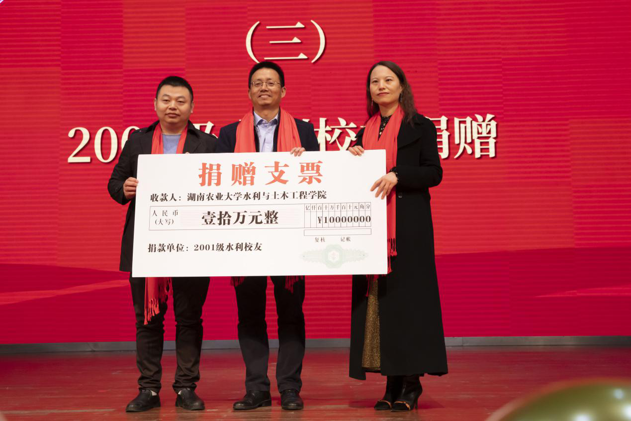 在捐赠仪式上,1999级水利校友为裴毅、姚帮松两位退休教师颁发了教师教学育人成就奖,2002水利校友为姚琦等3位学生颁发了校友奖学金,2001级水利校友为学院建设和发展捐赠了10万元人民币。