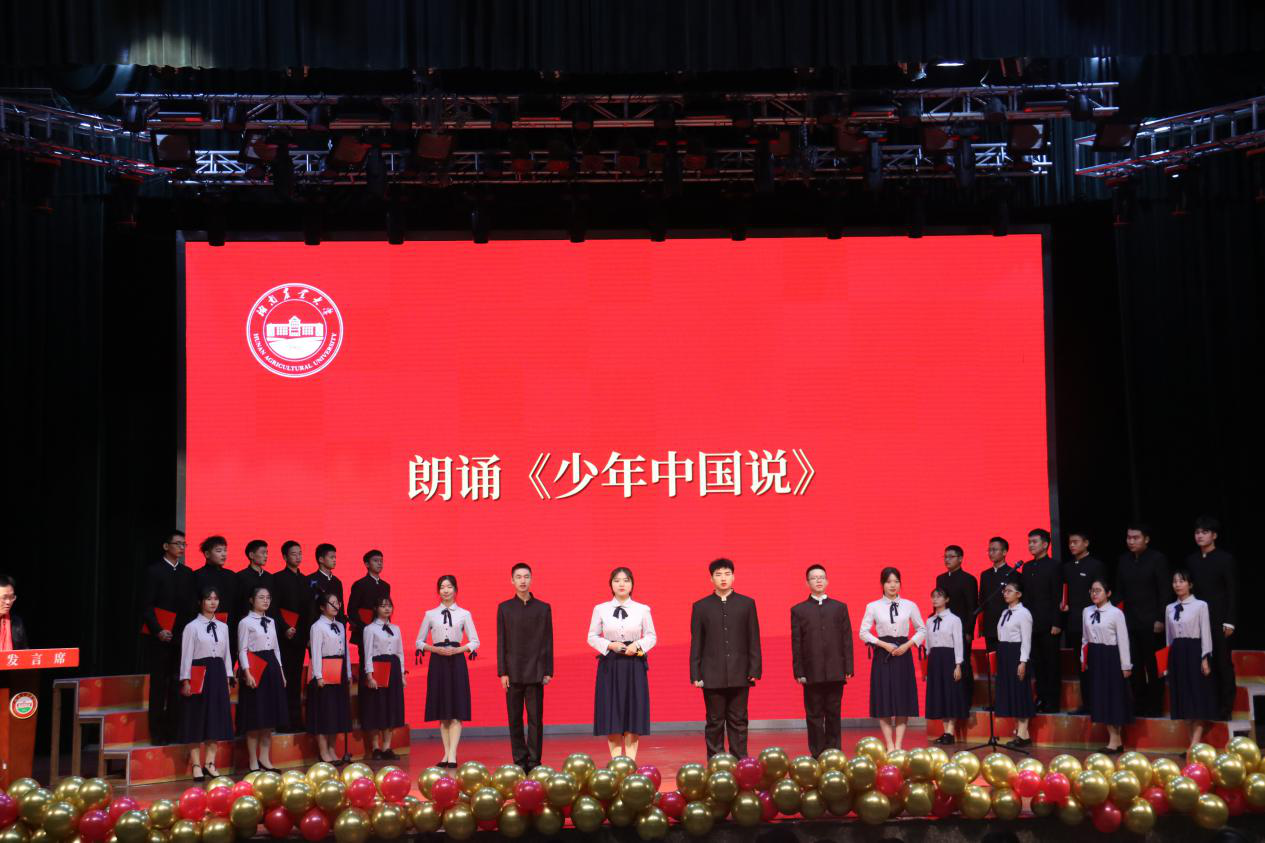 会上,学院合唱团表演了朗诵《少年中国说》与合唱《保卫黄河》。