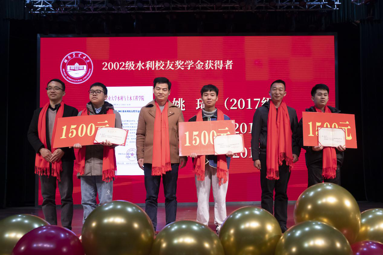 在捐赠仪式上,1999级水利校友为裴毅、姚帮松两位退休教师颁发了教师教学育人成就奖,2002水利校友为姚琦等3位学生颁发了校友奖学金,2001级水利校友为学院建设和发展捐赠了10万元人民币。
