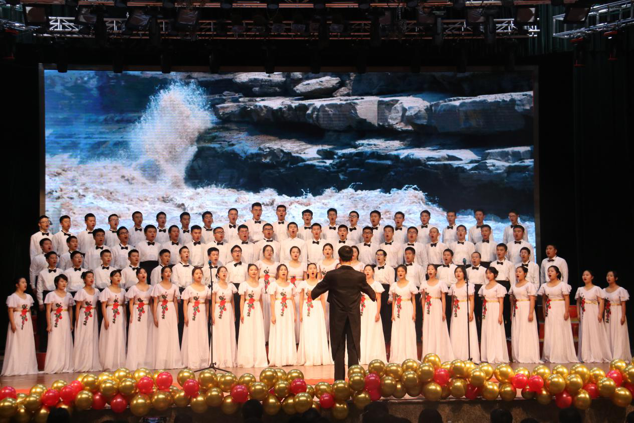 会上,学院合唱团表演了朗诵《少年中国说》与合唱《保卫黄河》。