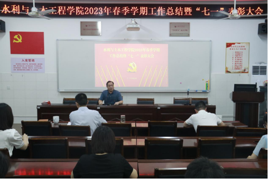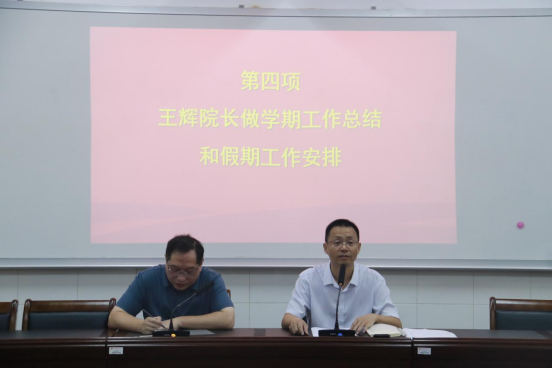 王辉院长分别从党建、师资队伍建设、人才培养、学科专业建设、科研服务能力、大学生思政工作等方面对本学期工作进行了全面的总结对暑期的一些重点工作进行了部署。