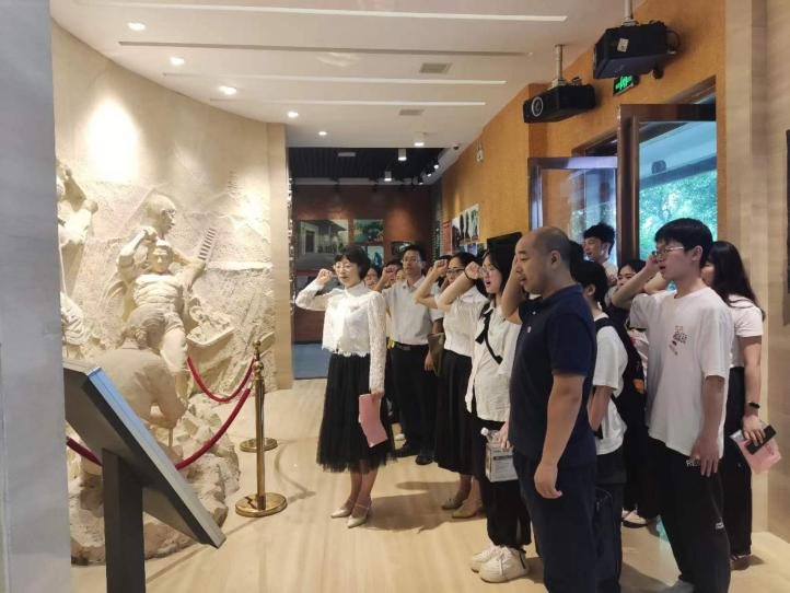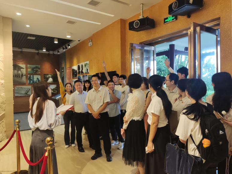 在韶山灌区陈列馆,全体党员跟随讲解员的脚步,通过详实的图片、实景沙盘及观看韶山灌区宣传片等形式,重温了韶山灌区的建设历史,深刻感受了当年灌区建设的艰苦过程和群众万众一心、热火朝天建设灌区的激情岁月,韶山灌区建设过程中涌现的韶灌精神让在场的每一位党员动容。