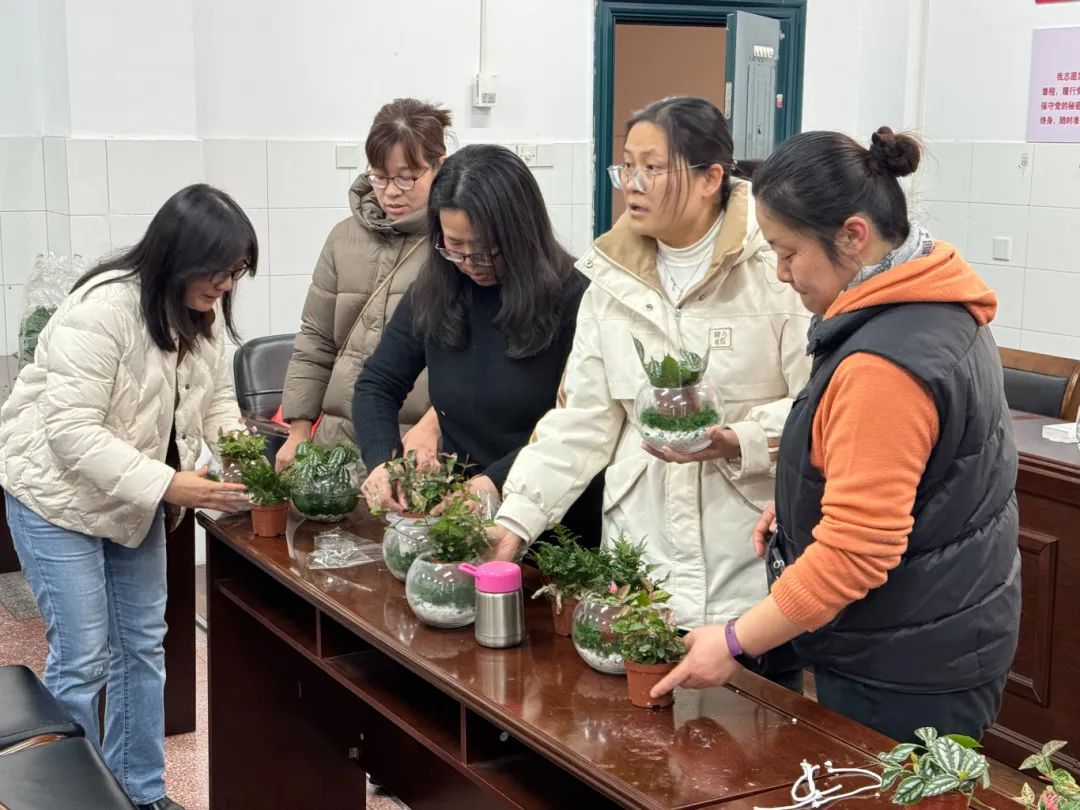 随后,老师们认真学习水培植物的种植方法和养护技巧,以及多肉、砂石、摆件等材料的搭配方式。在动手环节,大家纷纷动手实践,互相交流制作灵感,将一株株绿色植物移植到透明的玻璃容器中,通过自己的巧手,创造出一个个充满生机和创意的水培植物作品。这些作品不仅展现了独特的美学价值,更深刻地体现了对环境的关怀和对可持续发展理念的践行。每一件作品都是对自然资源的珍视,它们不仅美化了我们的生活空间,更是对绿色生活方式的一种倡导和实践。”大家纷纷表示,这样的活动不仅丰富了她们的业余生活,还让她们在忙碌的工作之余,能够放松心情,享受创作的乐趣。