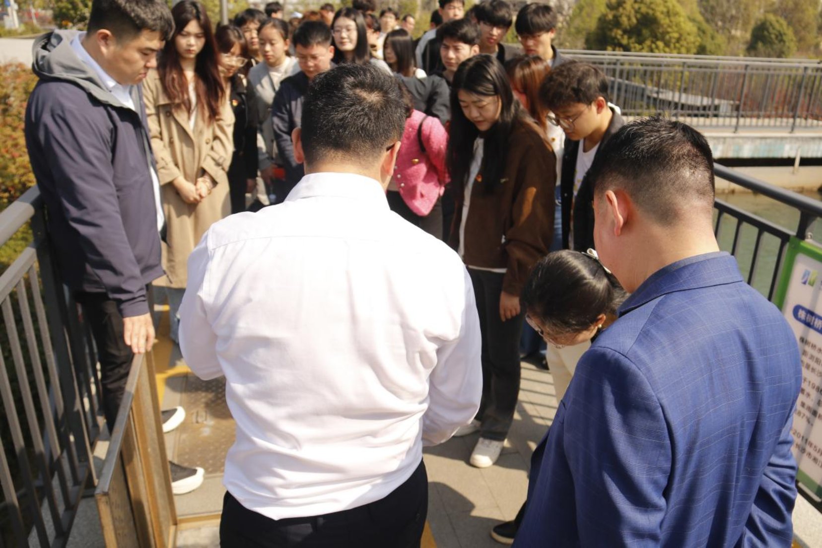 在湖南才饮长沙水有限公司智慧水务指挥中心,企业技术团队通过三维可视化平台,动态展示了智能调度系统、管网漏损监测等智慧水务应用场景。双方围绕“科技如何助力水资源高效利用”、“物联网 + 节水”技术创新等话题展开深入研讨。学院党委书记唐琳表示:将科研成果转化为节水实践,是高校与企业的共同使命,我们要以此次活动为契机,深化交流合作,为培养兼具专业素养与创新能力的新时代水利人才而不懈奋斗。