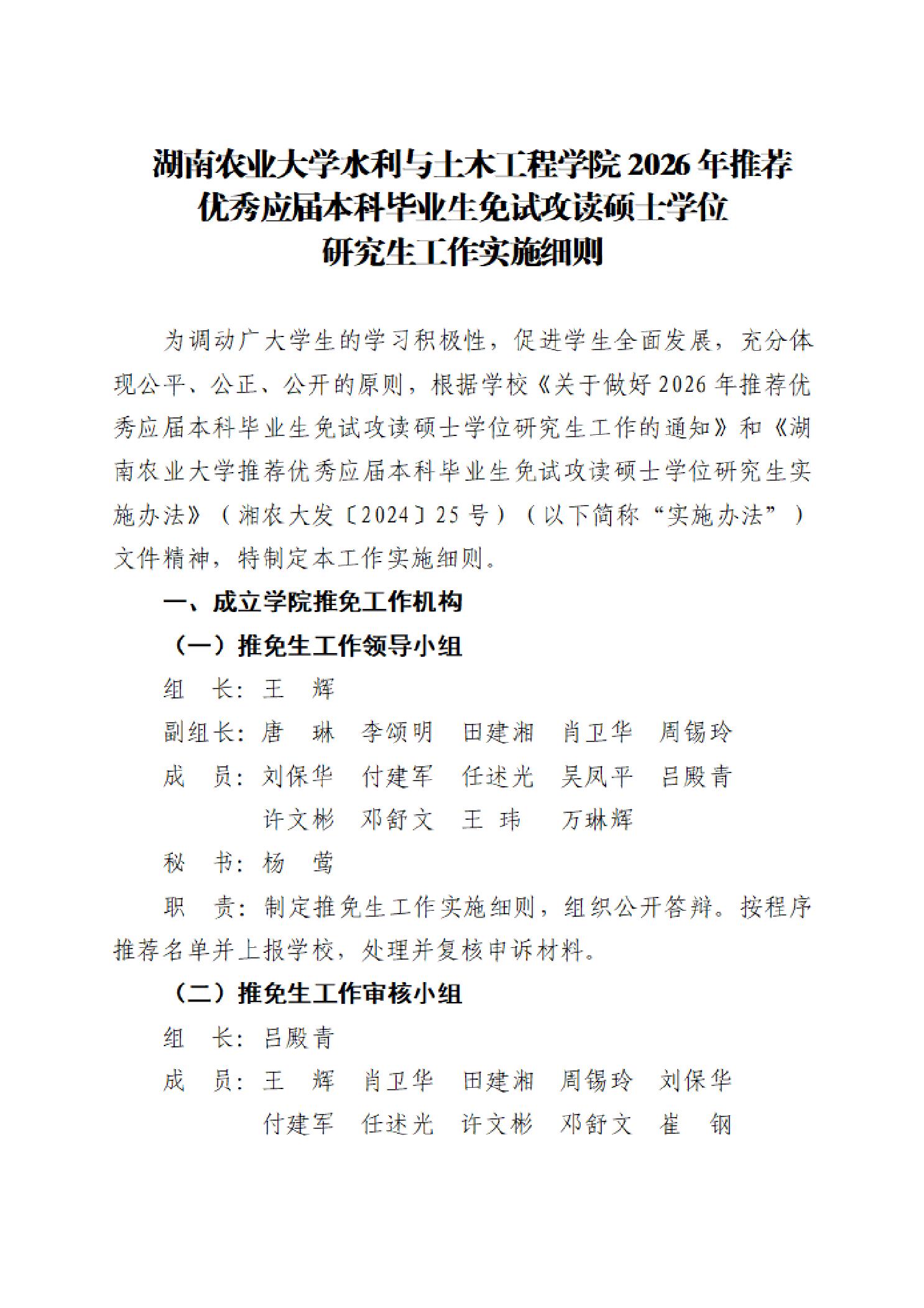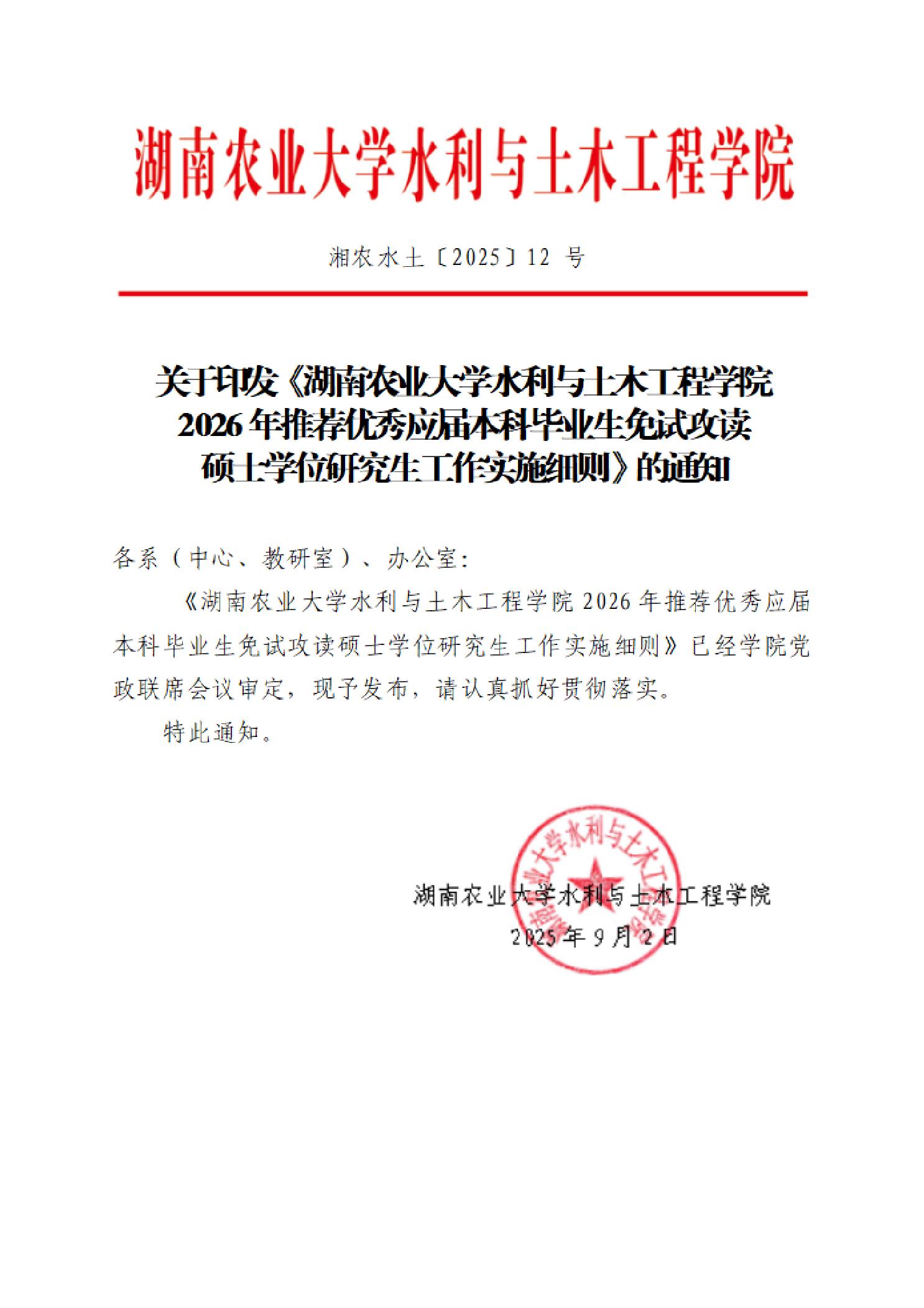 湘农水土〔2025〕12号--关于印发《黑料每日大赛2026年推荐优秀应届本科毕业生免试攻读硕士学位研究生工作实施细则》的通知(7).pdf