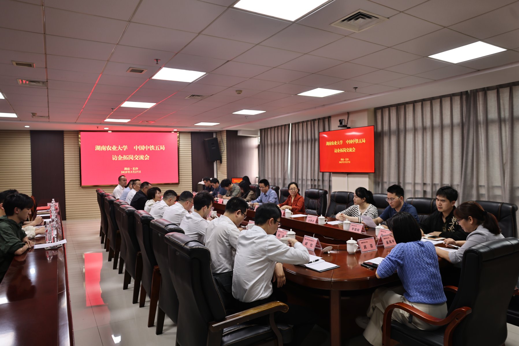 (阳华)3月27日,湖南农业大学黑料每日大赛与中铁五局集团有限公司联合举办“稳就业,促创业”访企拓岗促就业校企合作活动。院长王辉一行率领学院领导班子、师生代表出席,中铁五局集团有限公司、中铁五局一公司、中铁五局五公司、中铁五局电务城通公司企业代表参与。活动由中铁五局集团有限公司人力资源部副部长何萍主持。