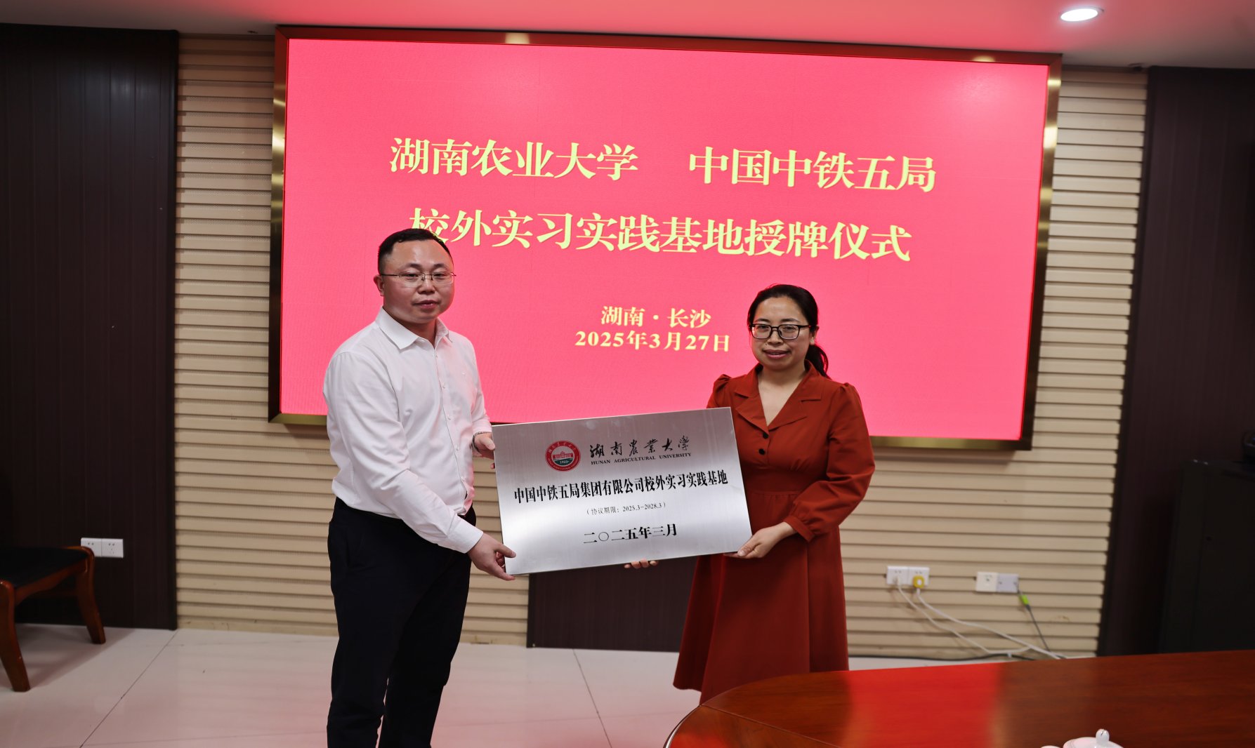 黑料每日大赛党委书记唐琳代表湖南农业大学与中铁五局集团何萍部长签署了毕业生就业基地合作意向书,为双方在人才输送、就业指导等方面的长期合作奠定了基础。