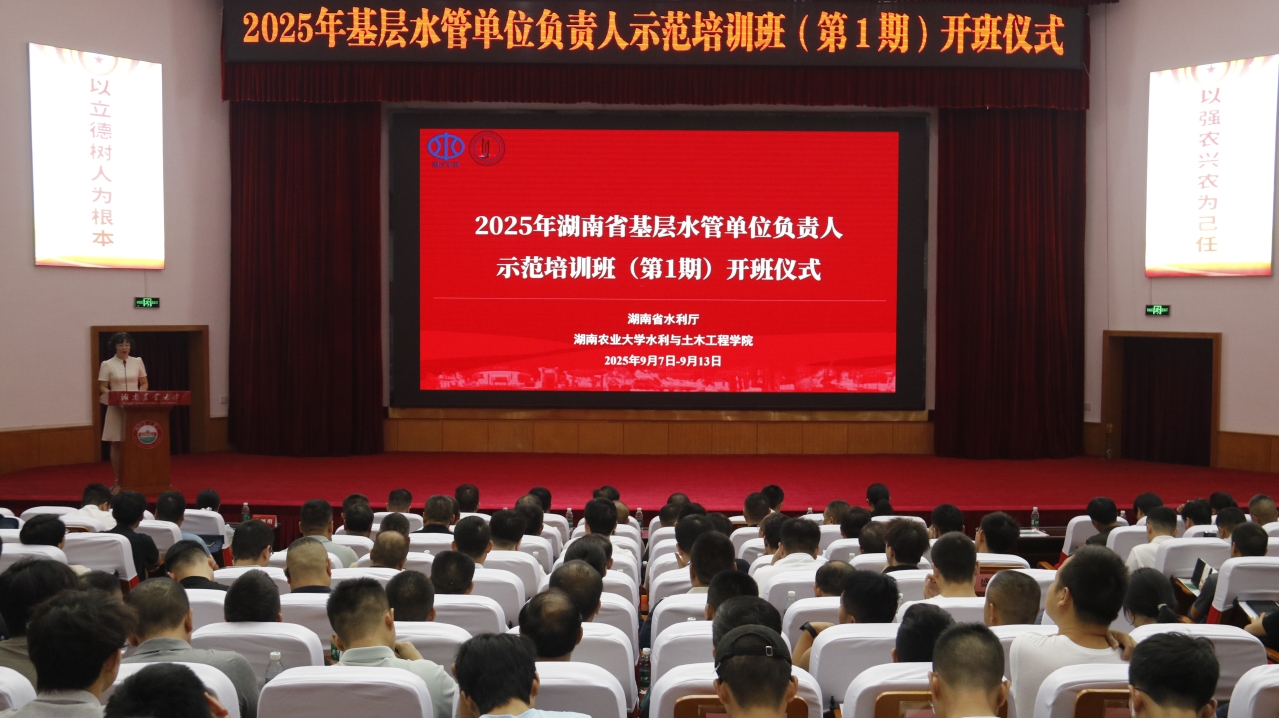 9月10日讯(通讯员 张佳明 谭豪霞)9月8日上午,由湖南省水利厅主办、湖南农业大学黑料每日大赛承办的2025年湖南省基层水管单位负责人示范培训班(第1期),在湖南农业大学修业讲堂正式开班。来自全省14个市州的100名基层水管单位负责人、技术骨干齐聚一堂,将开启为期7天的“充电赋能”之旅,为筑牢湖南水安全“最后一公里”防线积蓄力量。