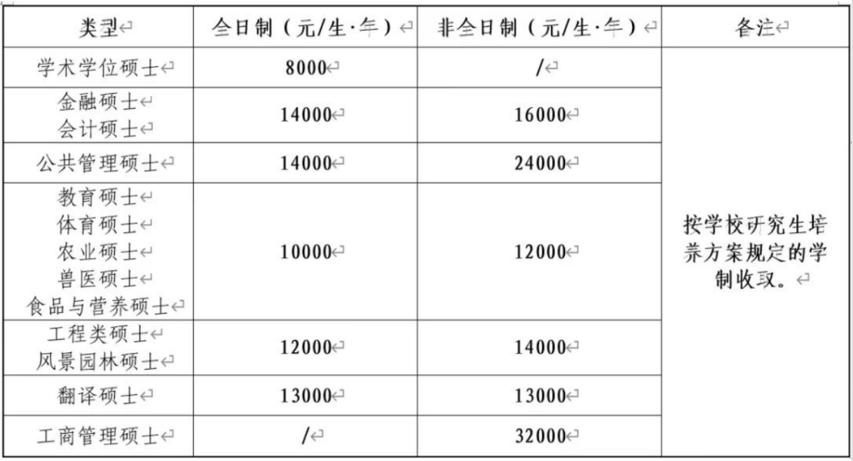 我校各类型研究生均需缴纳学费,学费收取标准如下,如有变动,按省发改委最新文件执行: